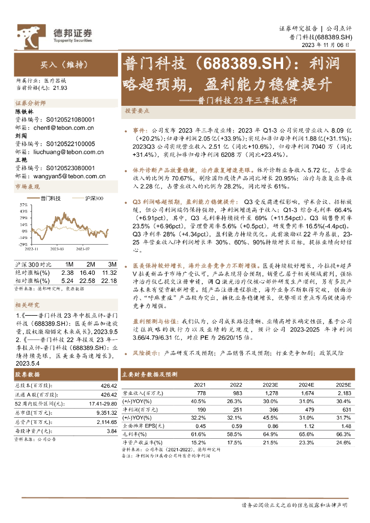 德邦证券:普门科技(688389)-23年三季报点评:利润略超预期,盈利能力稳健提升.pdf