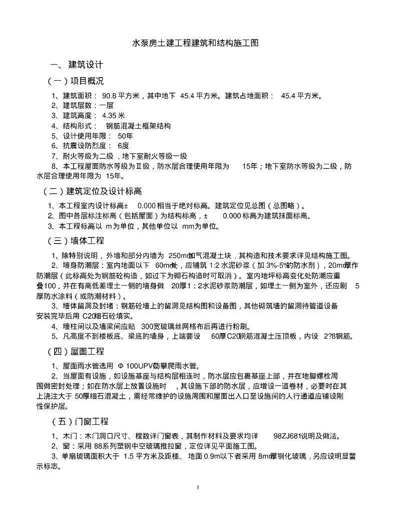 水泵房土建工程建筑和结构施工图.pdf