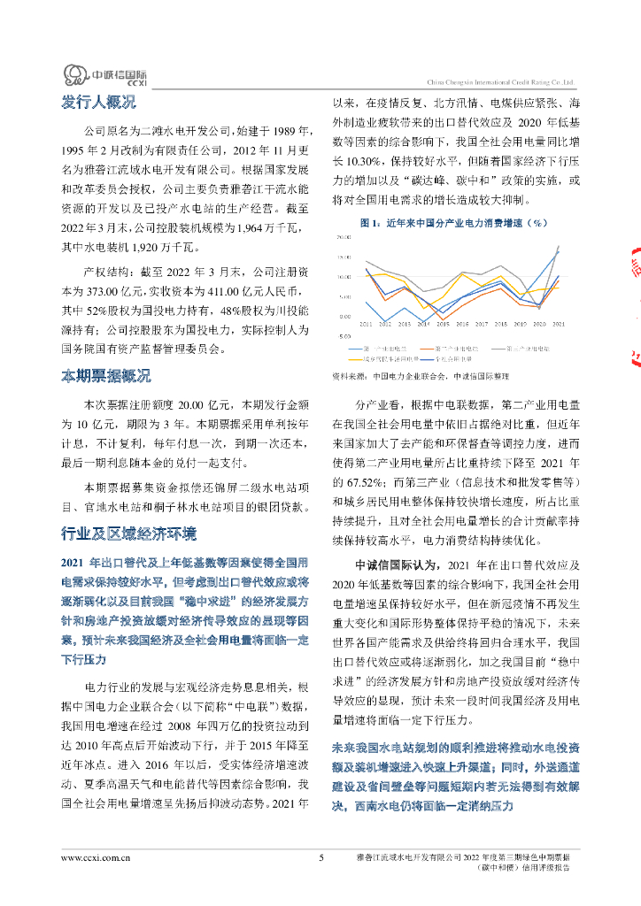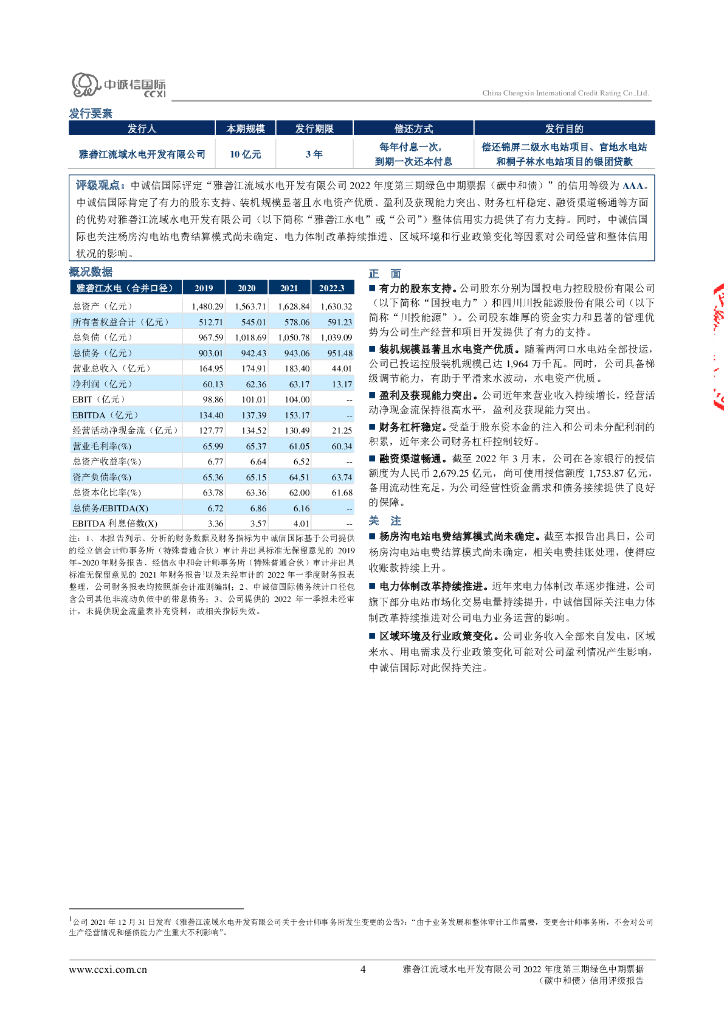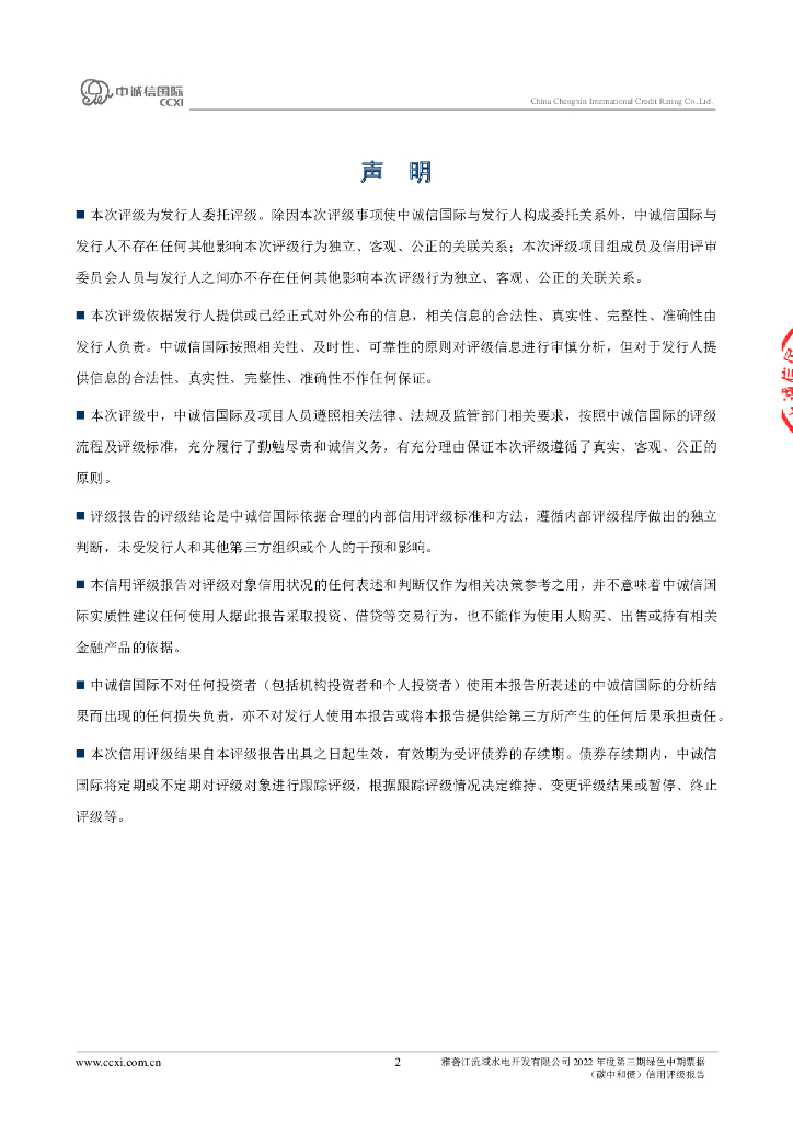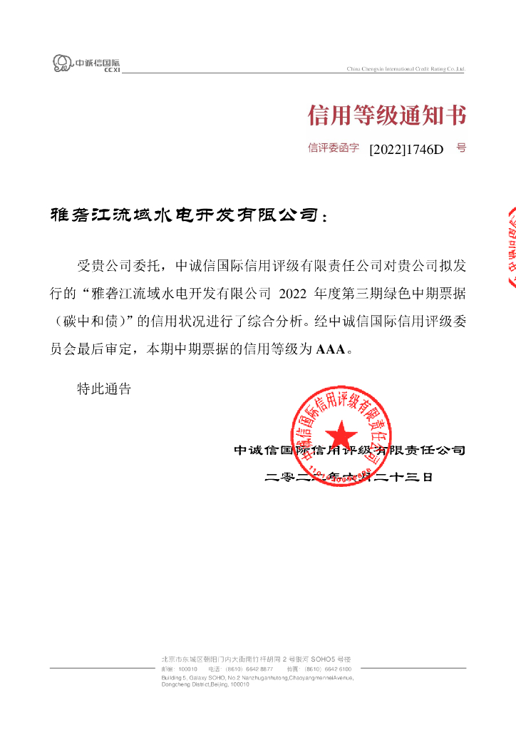 中诚信:雅砻江流域水电开发有限公司2022年度第三期绿色中期票据(碳中和债)信用评级报告.pdf