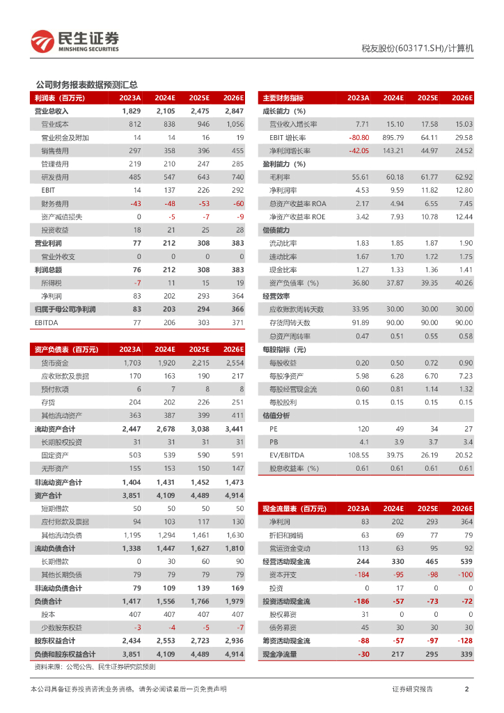 民生证券:税友股份(603171)-2024年中报点评:利润率显著提升,合规+AI产品发布.pdf