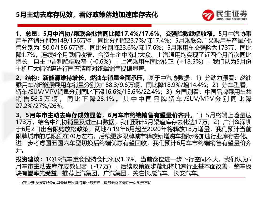 民生证券:5月乘用车销量数据点评:主动去库存见效,看好政策落地加速库存去化.pdf