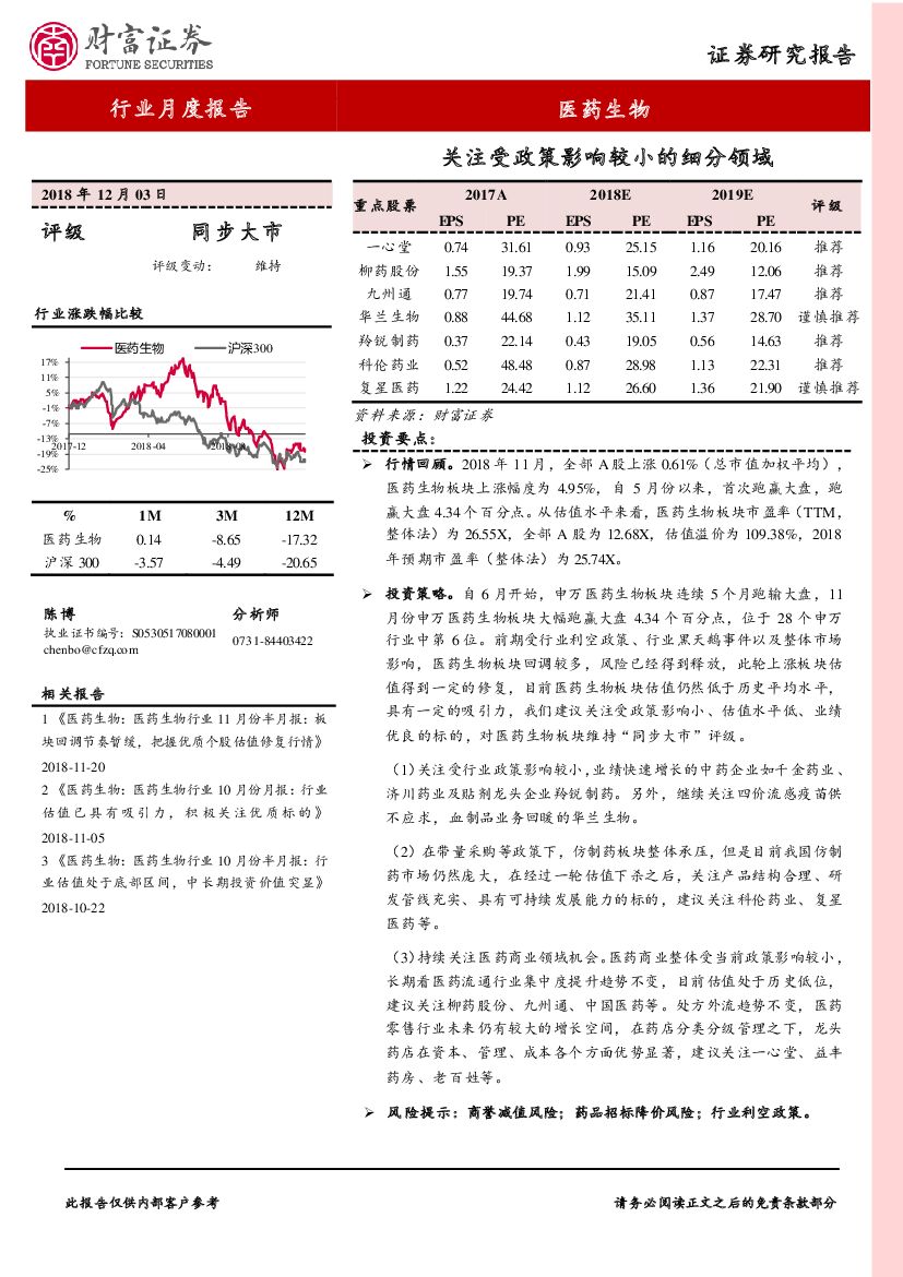 财富证券:医药生物行业月度报告:关注受政策影响较小的细分领域.pdf