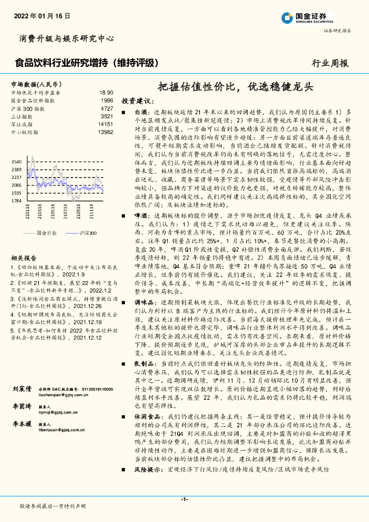 国金证券:食品饮料行业研究:把握估值性价比,优选稳健龙头.pdf