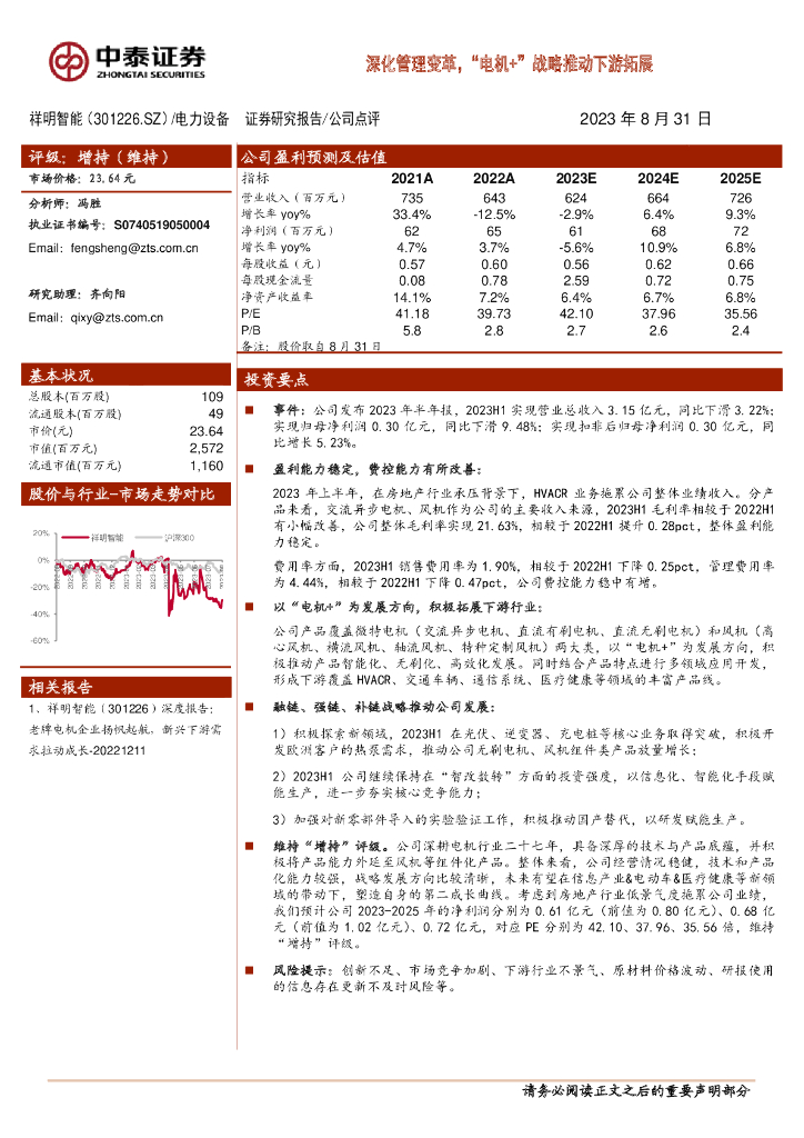 中泰证券:祥明智能(301226)-深化管理变革,“电机+”战略推动下游拓展.pdf