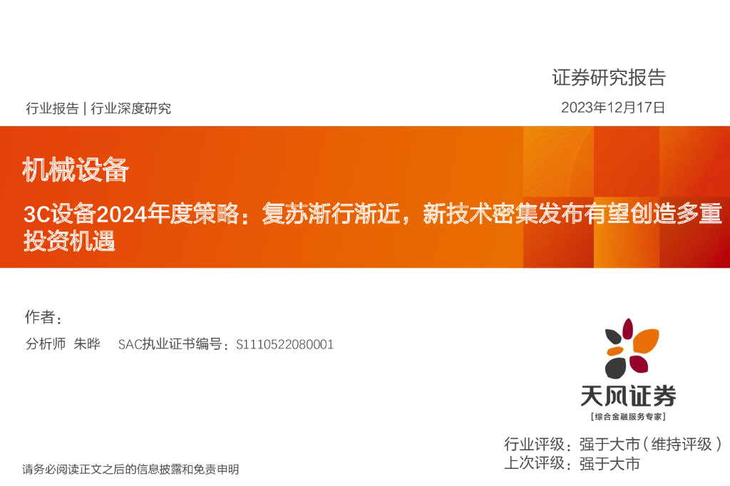天风证券:3C设备2024年度策略:复苏渐行渐近,新技术密集发布有望创造多重投资机遇.pdf