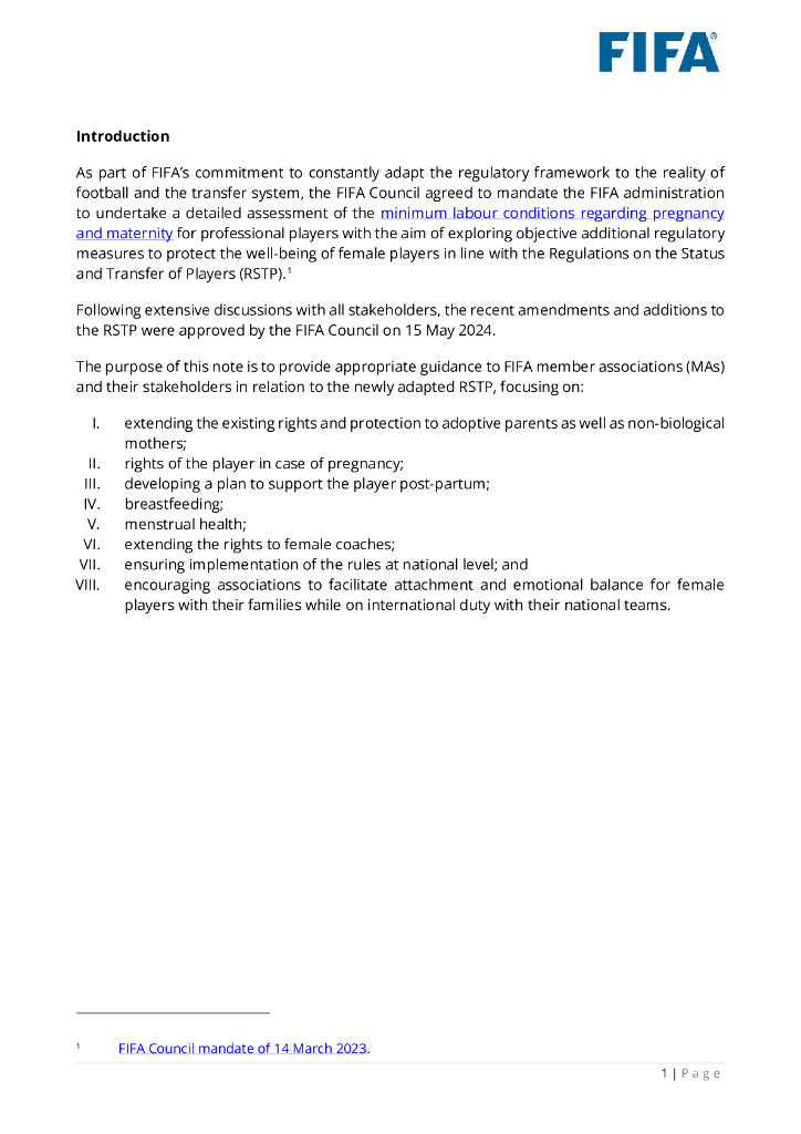 国际足联(FIFA):2024年关于《女子运动员地位和转会条例》新规定的说明报告(英文版).pdf