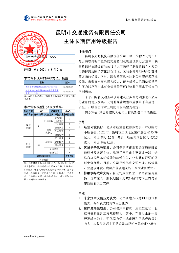 联合资信:昆明市交通投资有限责任公司主体信用评级报告.pdf