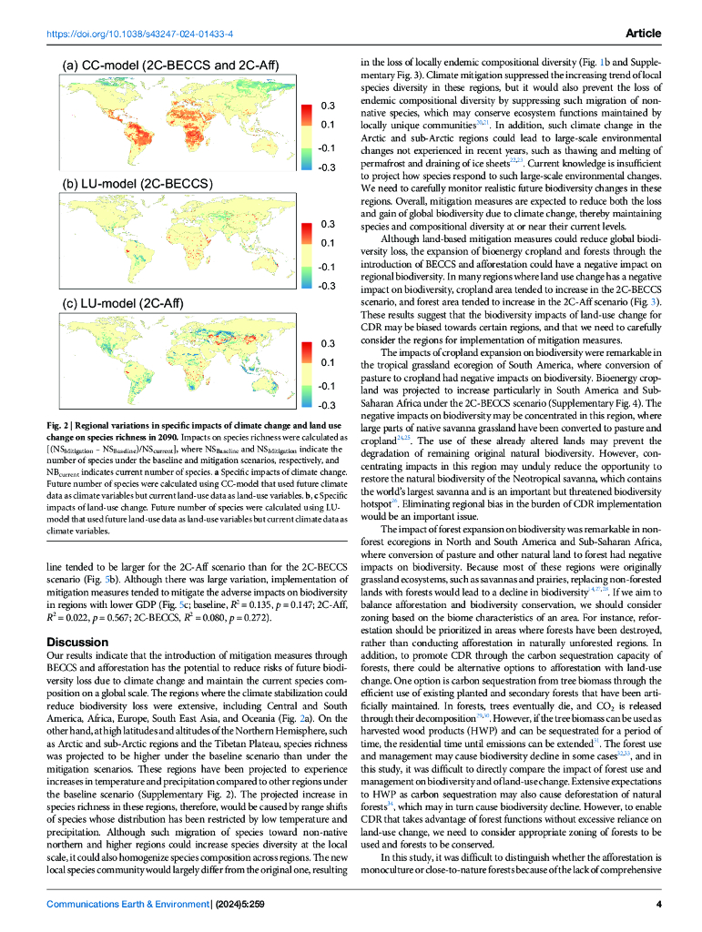 communications earth & environment:基于土地的气候变化减缓措施的选择将影响未来全球生物多样性的损失(英文版).pdf