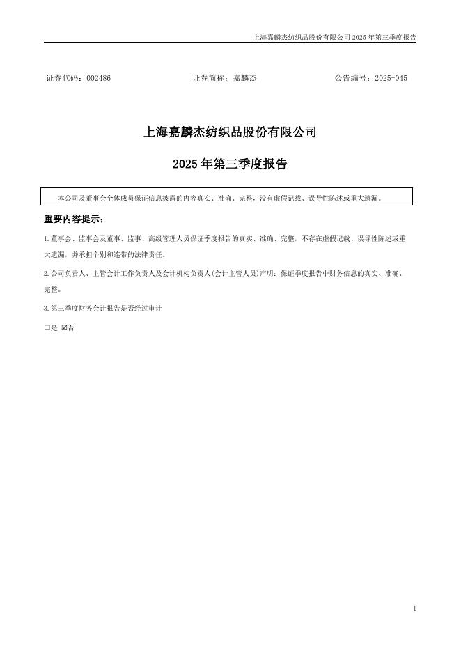 002486-嘉麟杰:2025年三季度报告.pdf