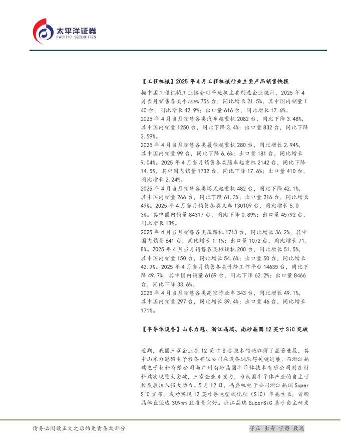 太平洋证券:机械日报:2025年4月工程机械行业主要产品销售快报.pdf