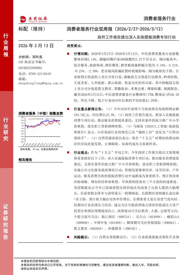 东莞证券:消费者服务行业双周报:政府工作报告提出深入实施提振消费专项行动.pdf