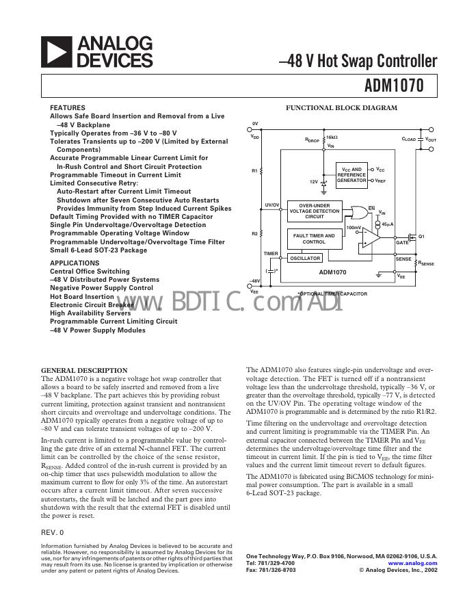 ANALOG DEVICES ADM1070 数据手册.pdf