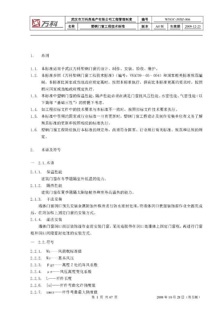 知名地产塑钢门窗施工技术技术标准.pdf