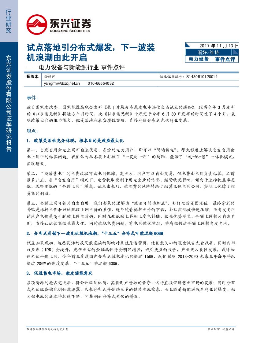 东兴证券:电力设备与新能源行业事件点评:试点落地引分布式爆发,下一波装机浪潮由此开启.pdf