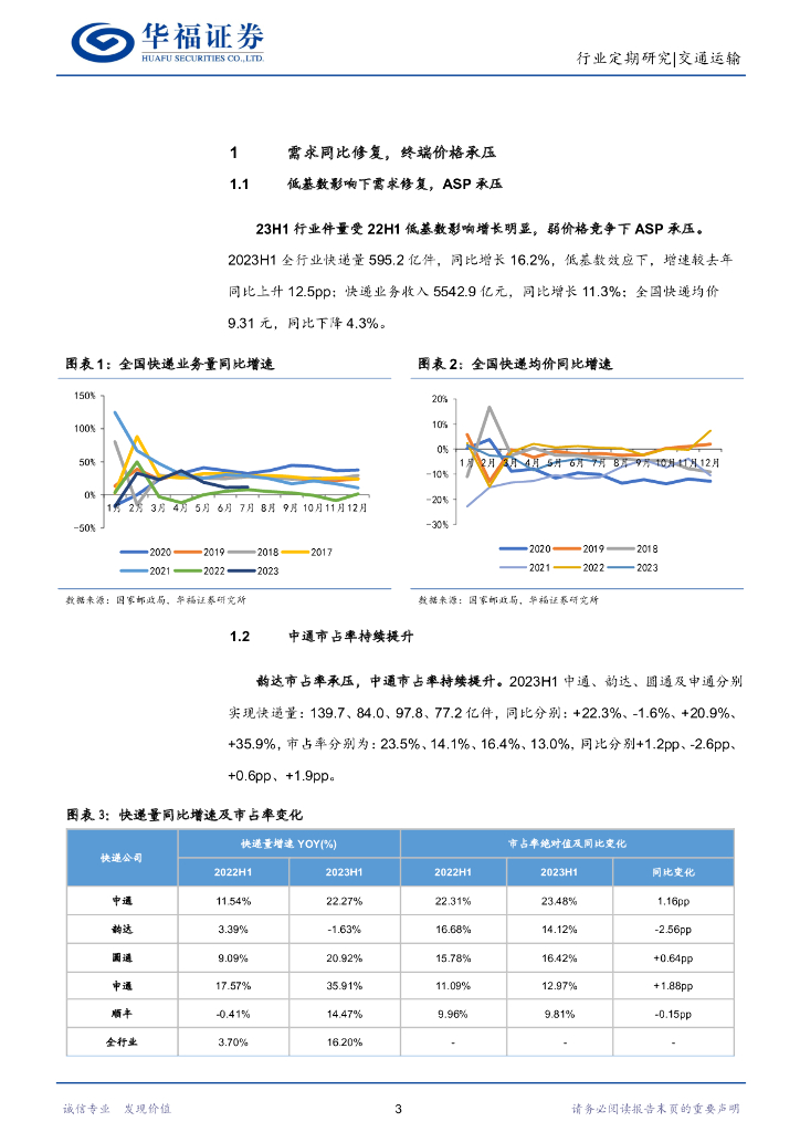 华福证券:快递服务行业2023年半年报小结:终端价格压力存在,头部快递经营韧性依旧.pdf
