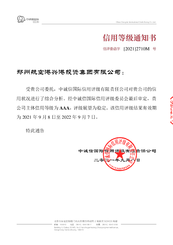中诚信:郑州航空港兴港投资集团有限公司2021年主体信用评级报告及跟踪安排.pdf