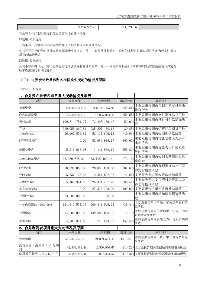 301152-天力锂能:天力锂能集团股份有限公司2025年第三季度报告(更正后).pdf
