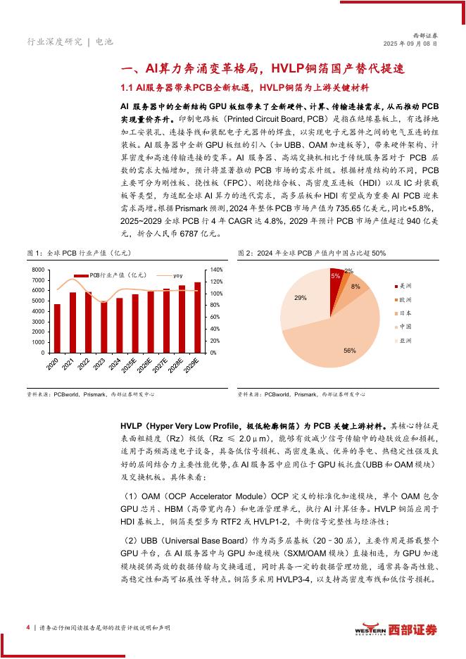 西部证券:电池行业AIPCB新材料系列报告(一):HVLP铜箔,AI浪潮奔涌推动升级,重塑供应格局.pdf