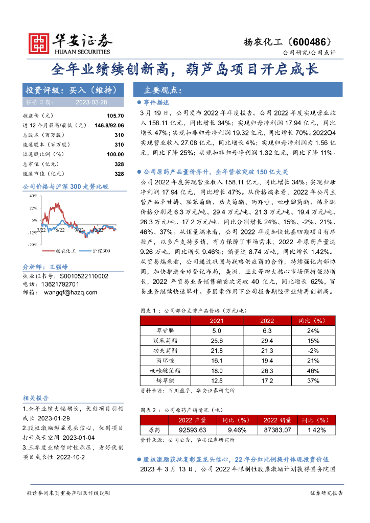 华安证券:扬农化工(600486)-全年业绩续创新高,葫芦岛项目开启成长.pdf