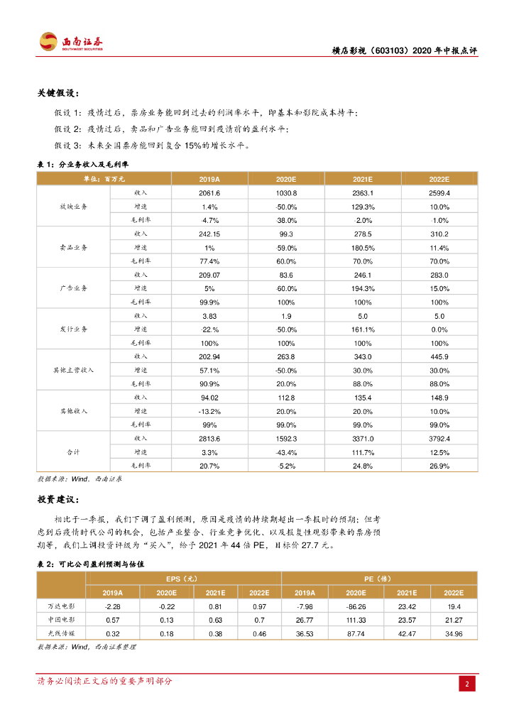 西南证券:横店影视(603103)-疫情影响偏短期,看好公司长期价值.pdf