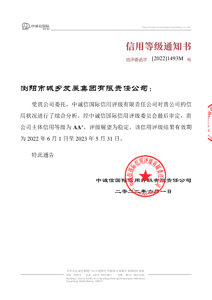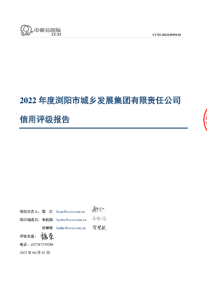 中诚信:2022年度浏阳市城乡发展集团有限责任公司信用评级报告.pdf