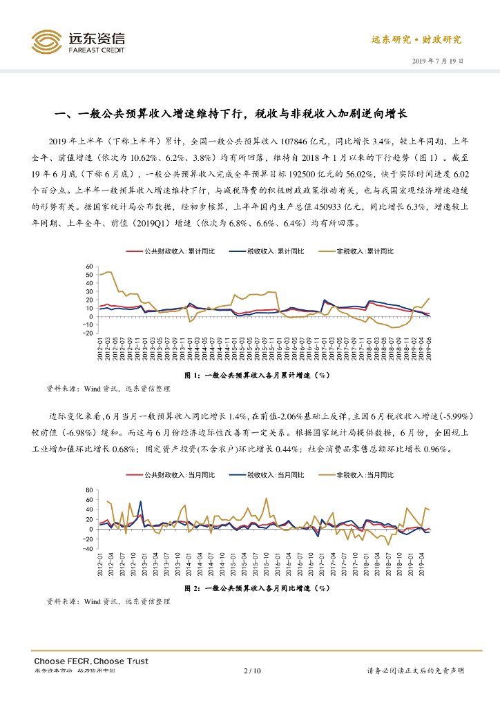 远东资信:一般公共预算赤字创历史新高,稳增长、惠民生倾向凸显 ——2019 年上半年财政数据点评.pdf