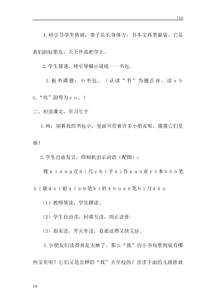 一年级语文(教案1)识字8 小书包教学设计.doc
