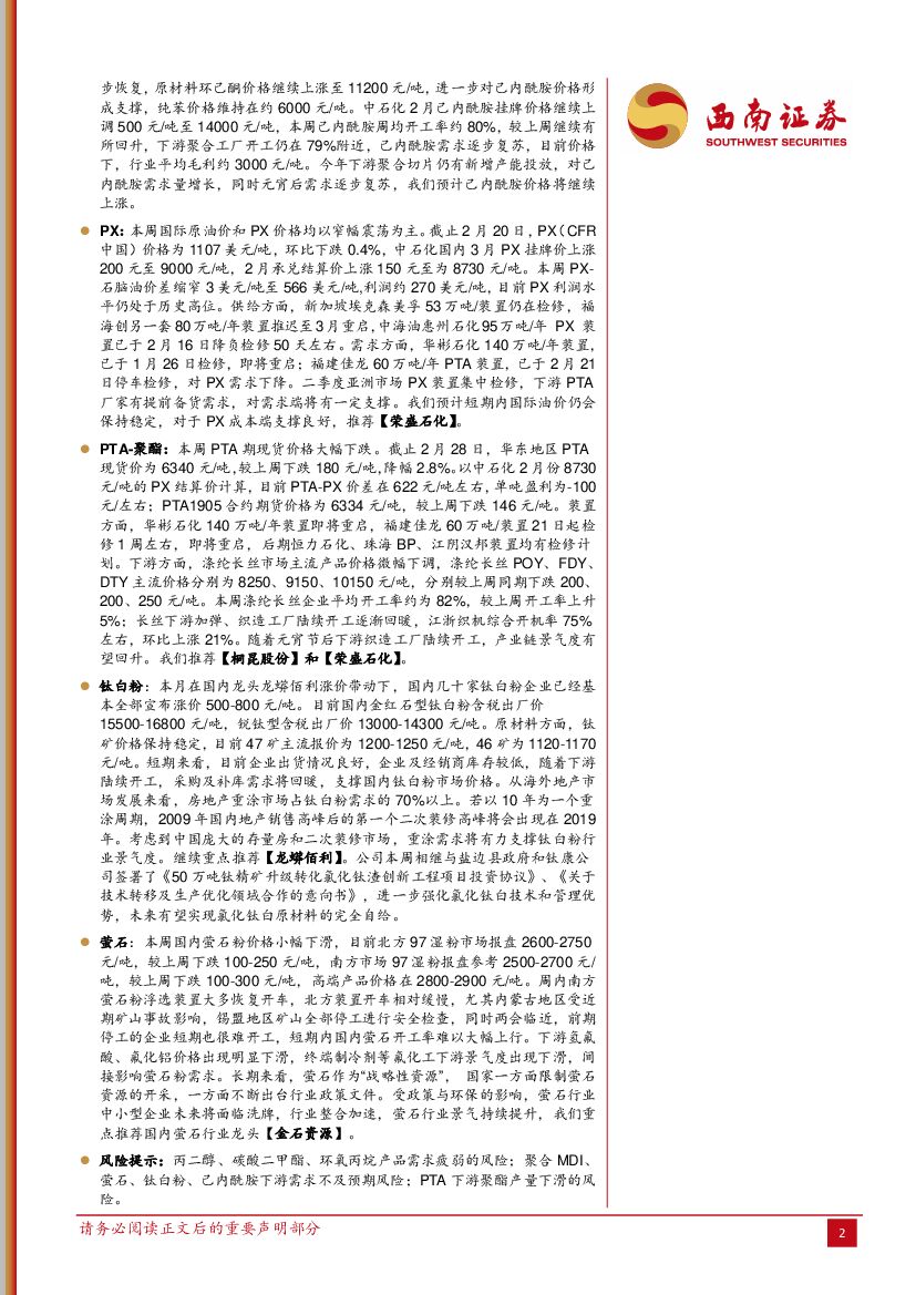 西南证券:化工行业周观点:万华大幅上调MDI报价,看好有机硅价格继续反弹.pdf