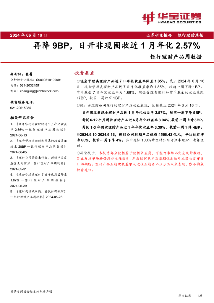 华宝证券:银行理财产品周数据:再降9BP,日开非现固收近1月年化2.57%.pdf