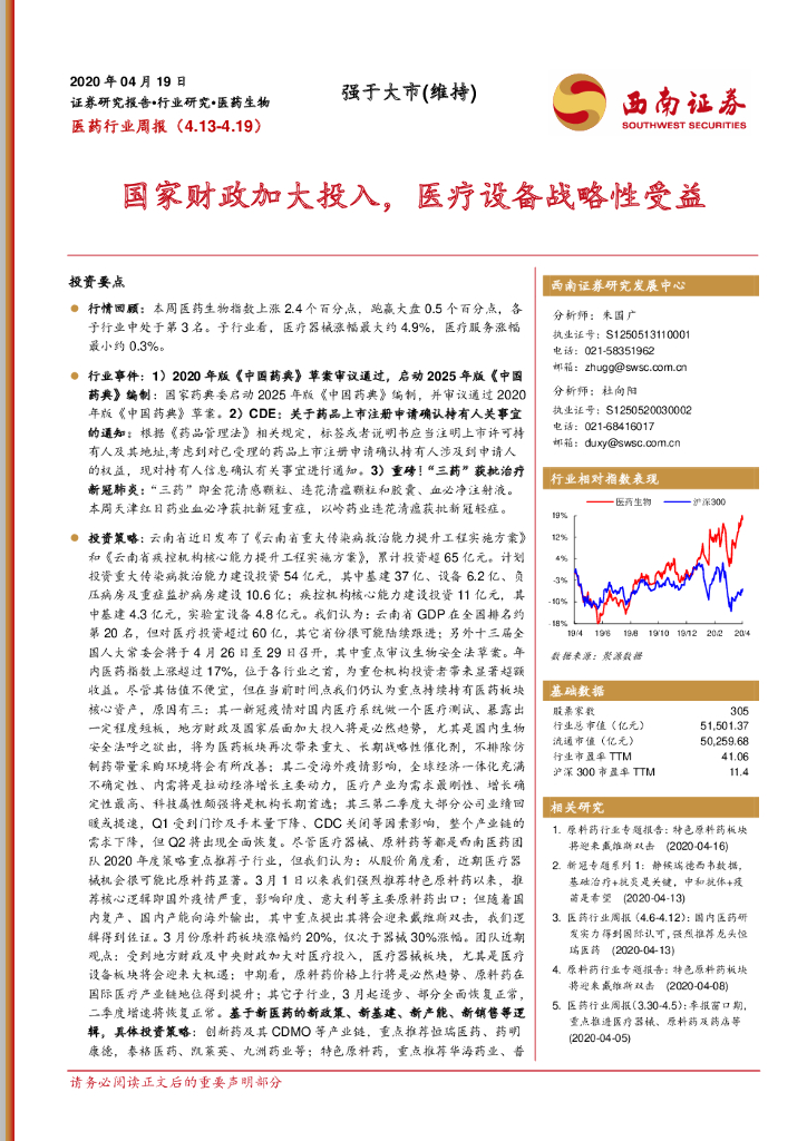 西南证券:医药行业周报:国家财政加大投入,医疗设备战略性受益.pdf