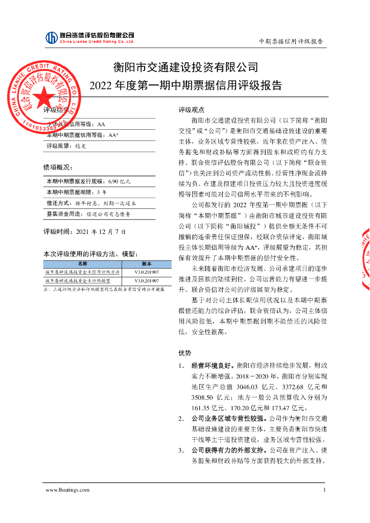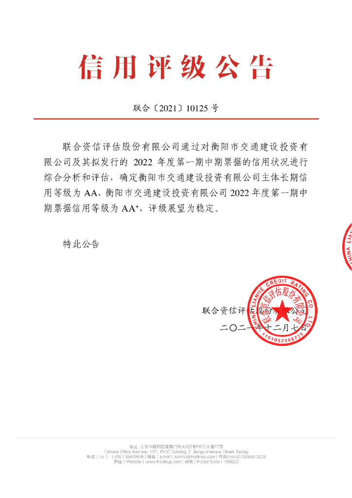 联合资信:衡阳市交通建设投资有限公司2022年度第一期中期票据信用评级报告.pdf