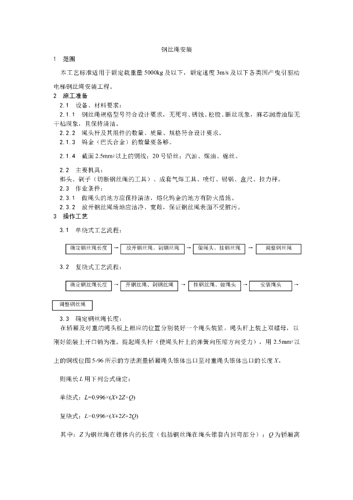 曳引驱动电梯钢丝绳安装施工工艺.doc