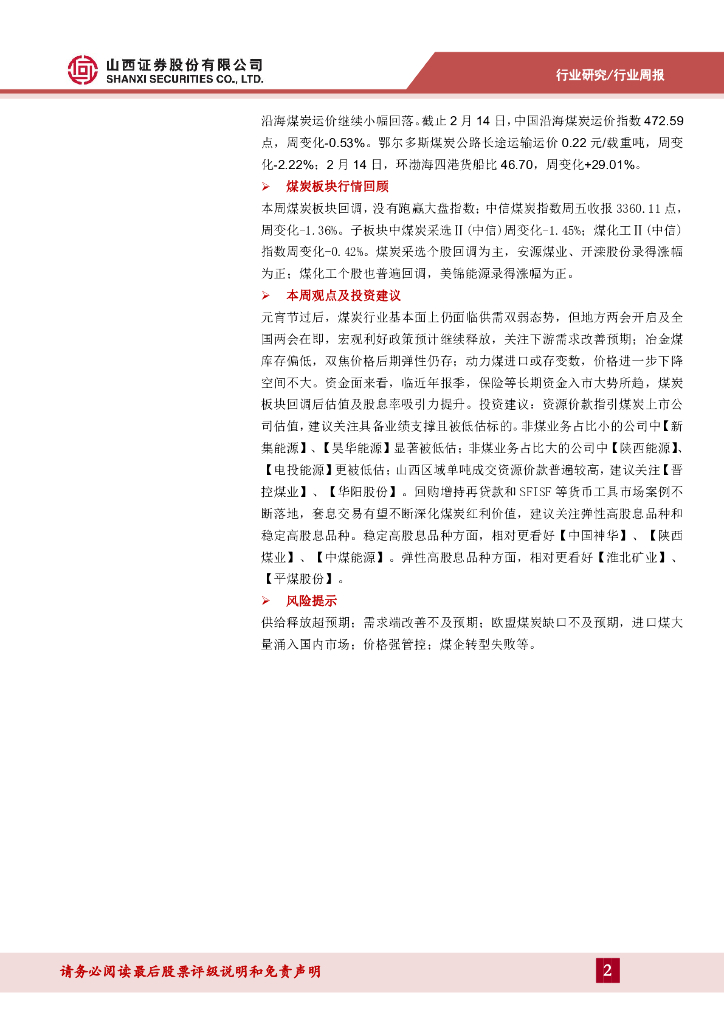 山西证券:煤炭行业周报:关注回调后低估值对长期资金的吸引力提高.pdf
