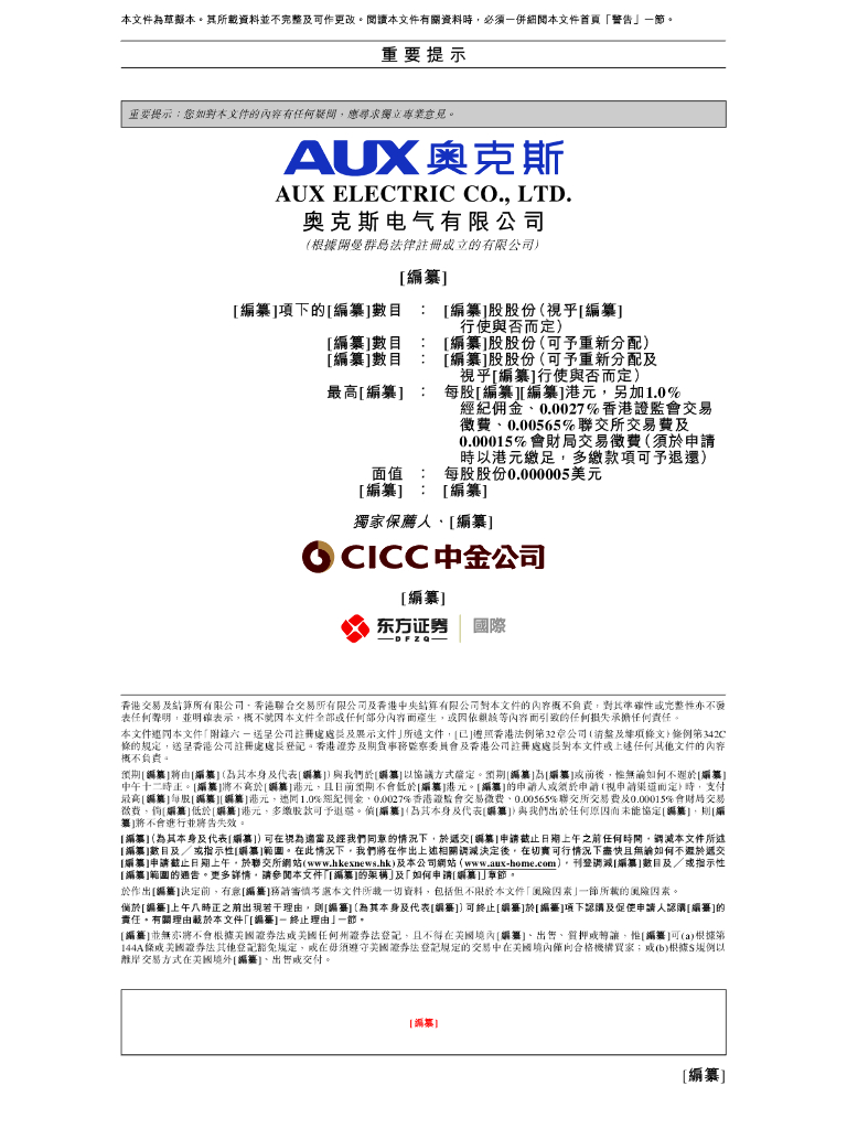 AUX奥克斯电气有限公司港交所科创板IPO上市招股说明书.pdf