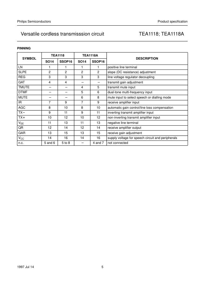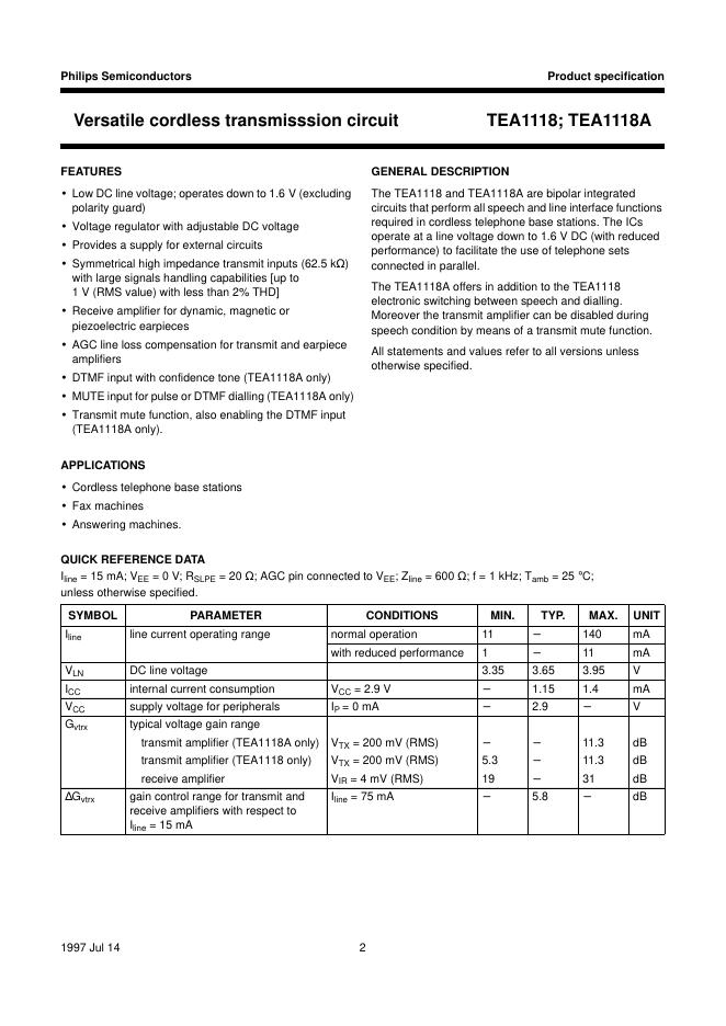PHILIPS TEA1118; TEA1118A Versatile cordless transmisssion circuit 数据手册.pdf