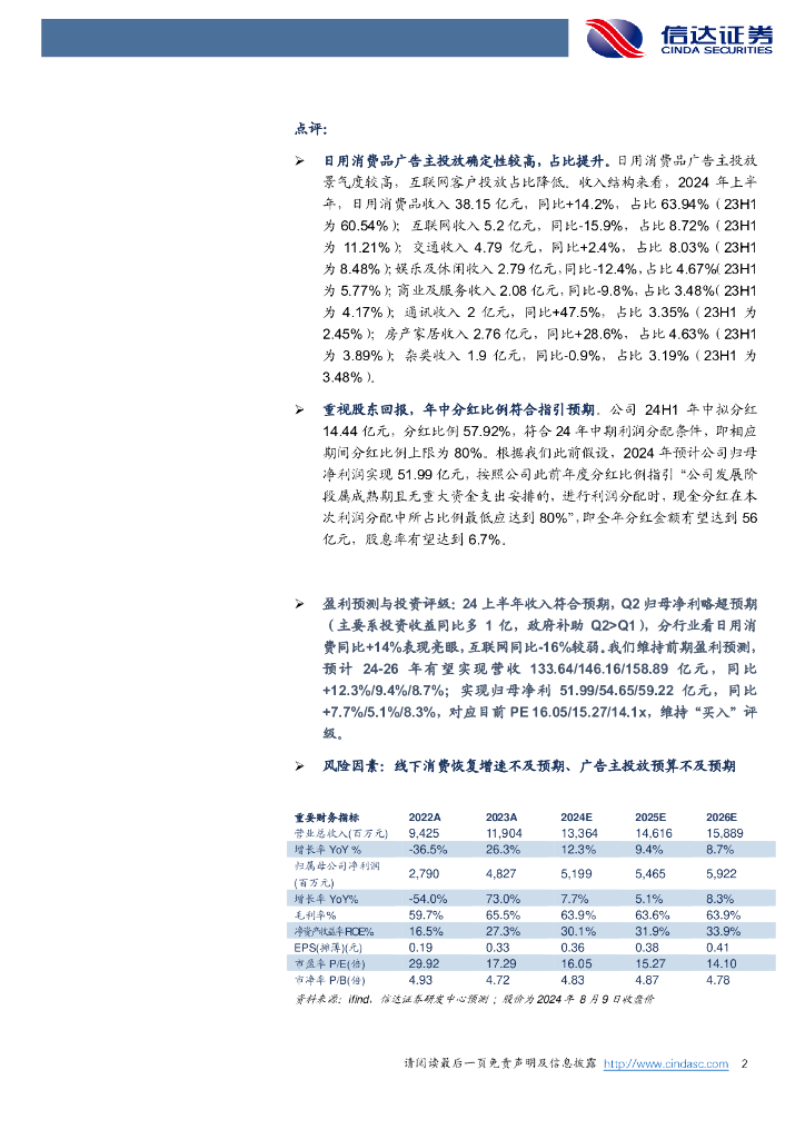 信达证券:分众传媒(002027)-24H1业绩符合预期,年中实现承诺分红,重视股东回报.pdf