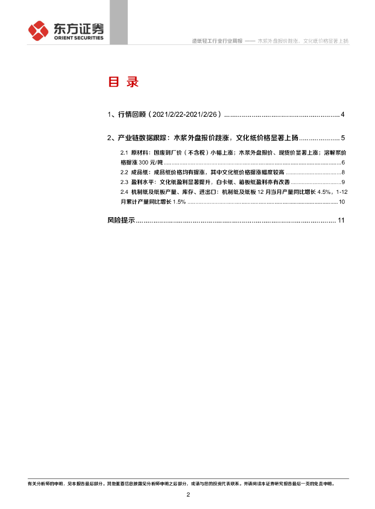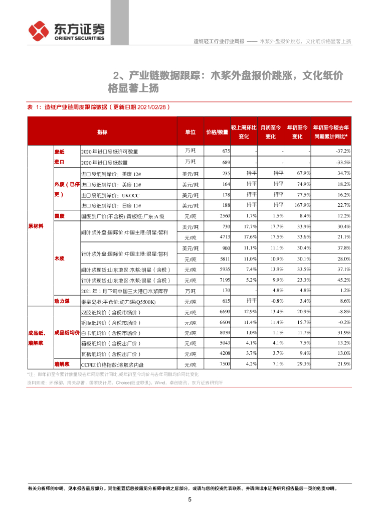 东方证券:造纸产业链数据每周速递:木浆外盘报价跳涨,文化纸价格显著上扬.pdf