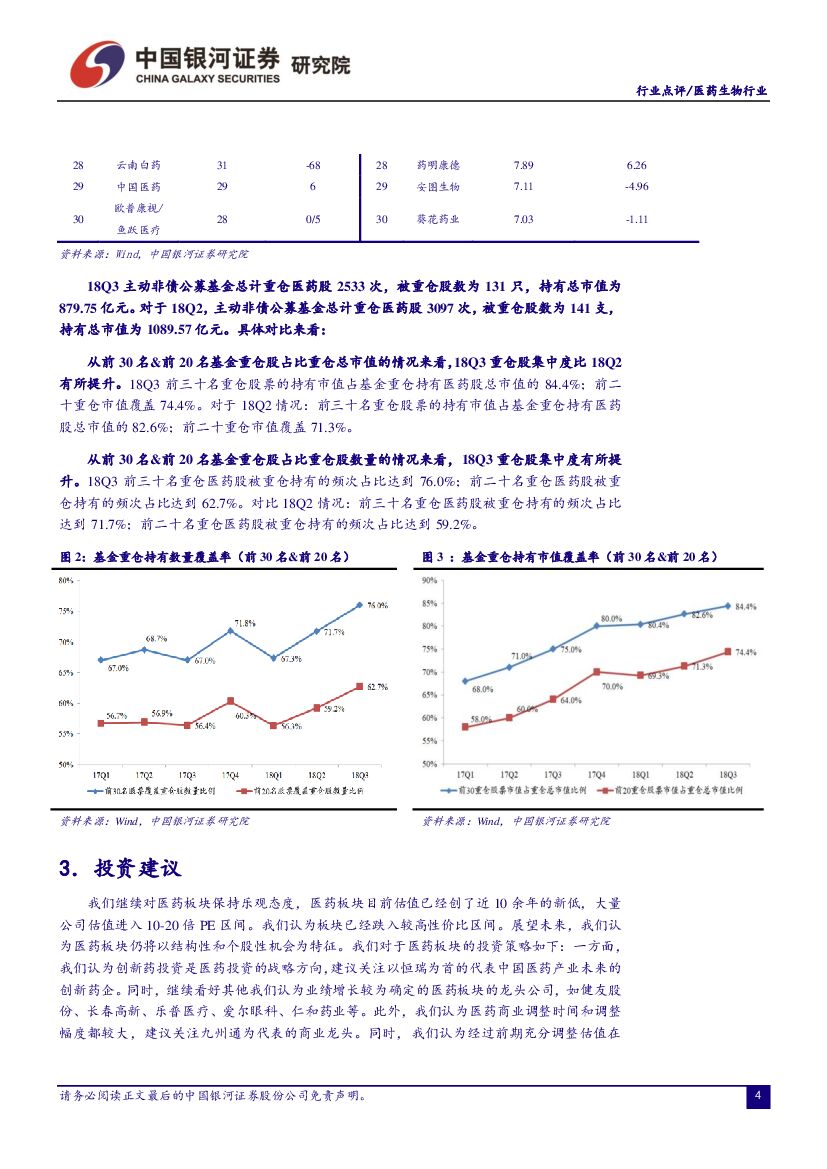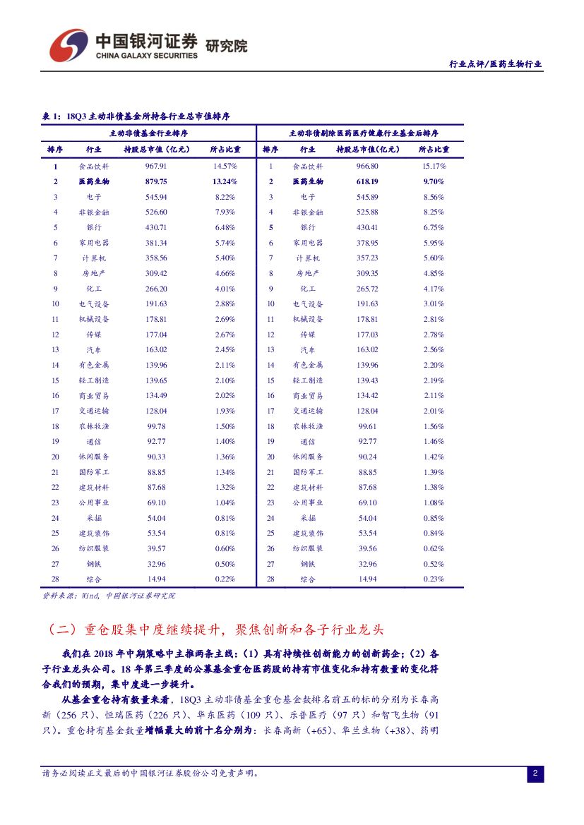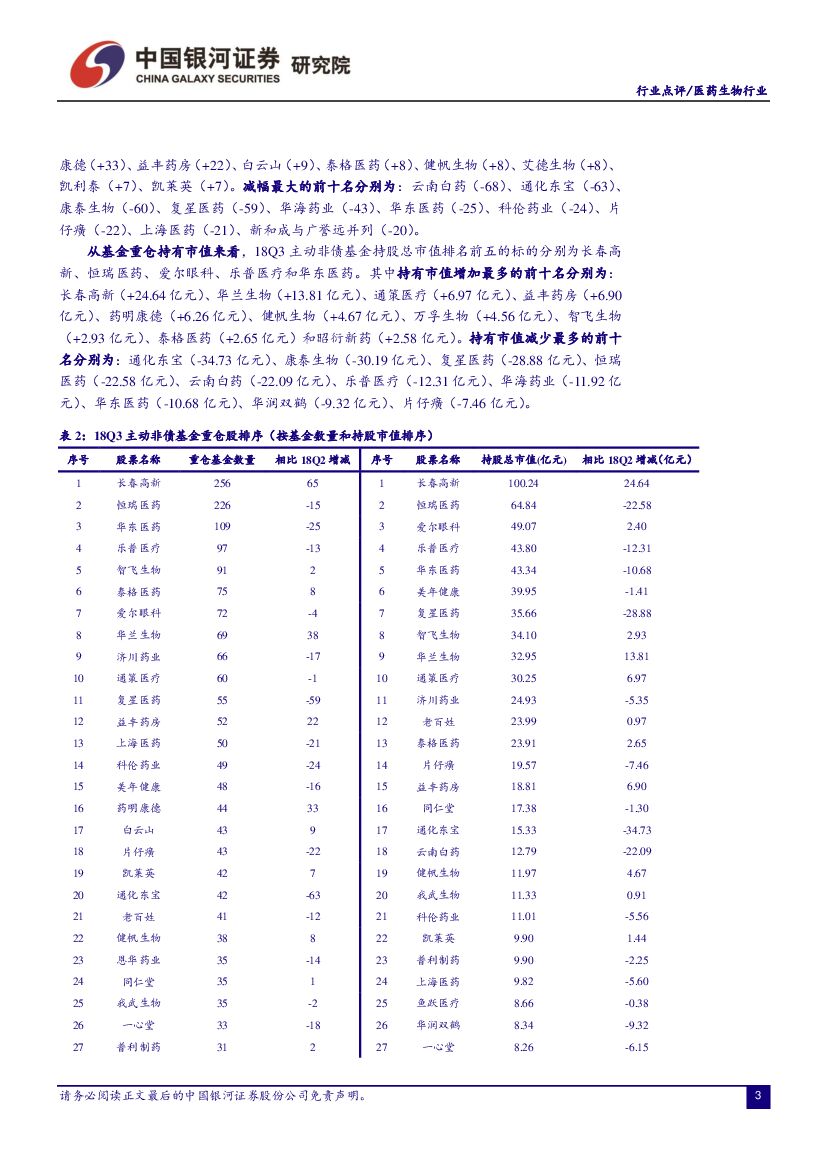 中国银河:医药生物行业:主动公募18Q3医药持仓比重下降,集中度提升.pdf