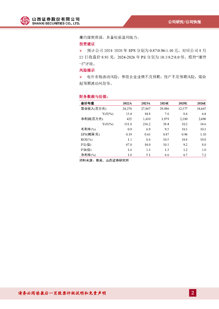 山西证券:皖能电力(000543)-盈利增长显著,投产释放可期.pdf