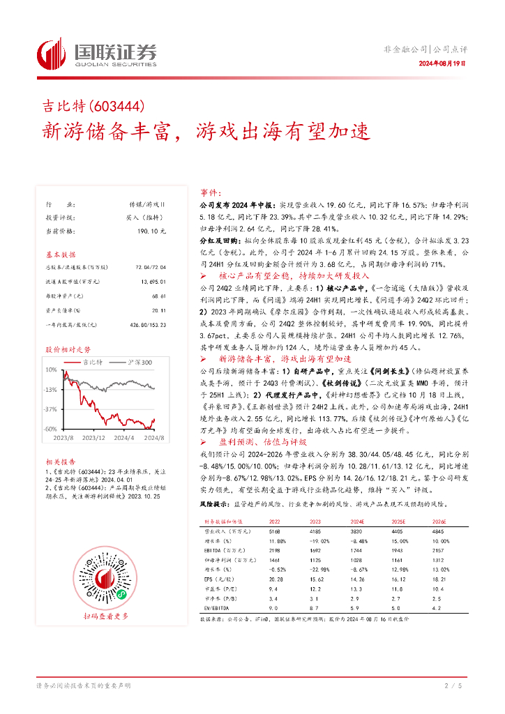 国联证券:吉比特(603444)-新游储备丰富,游戏出海有望加速.pdf