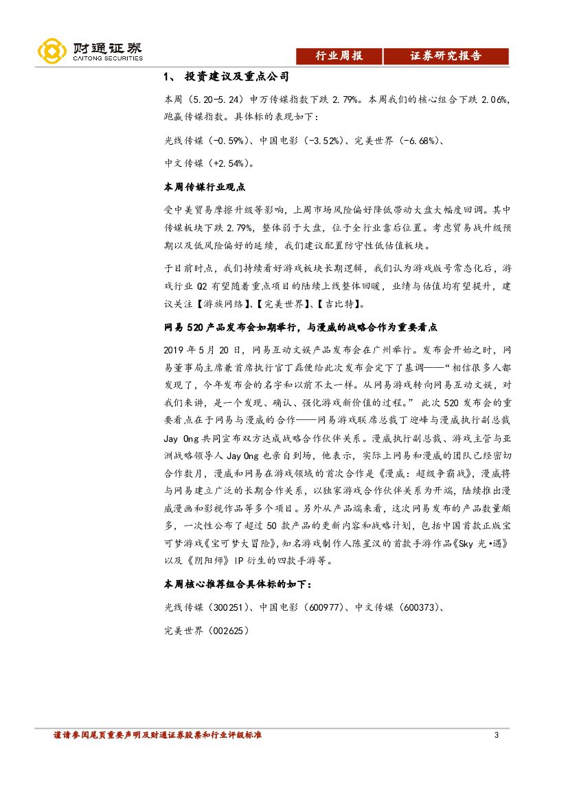 财通证券:传媒行业周报(第20周):贸易摩擦降低风险偏好,网易与漫威宣布战略合作.pdf