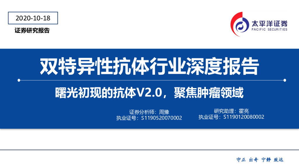 太平洋证券:双特异性抗体行业深度报告:曙光初现的抗体V2.0,聚焦肿瘤领域.pdf