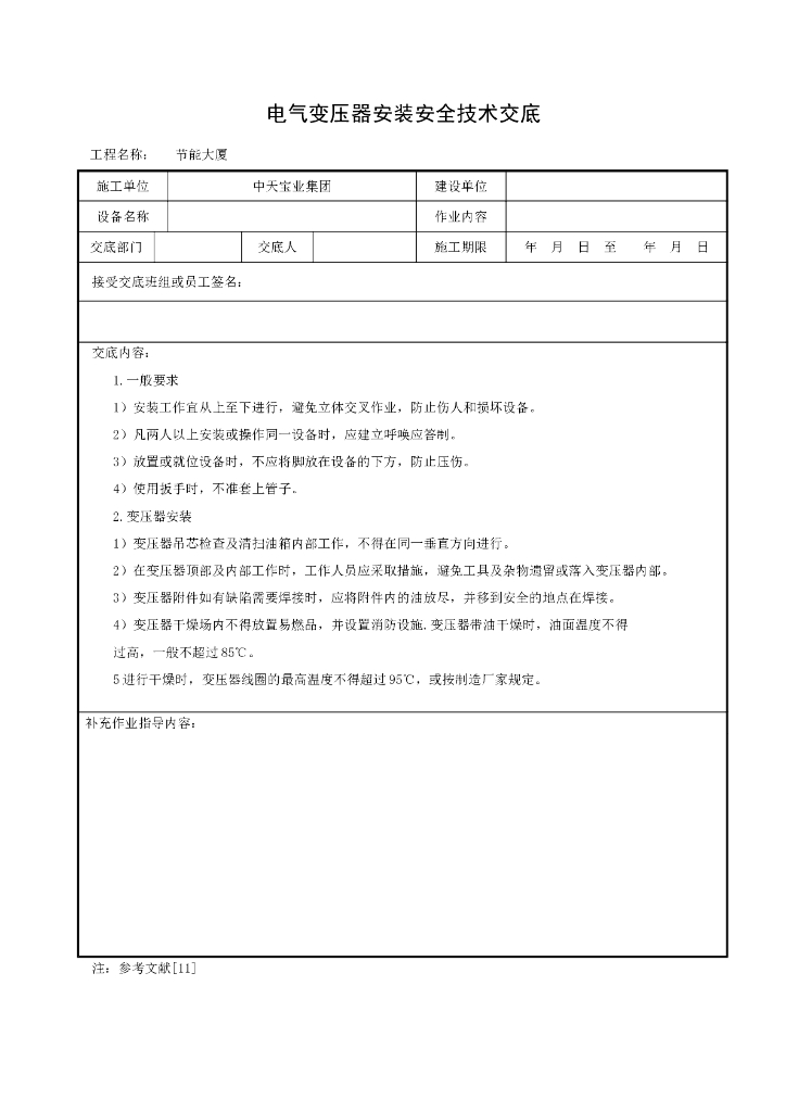 施工现场变压器安装安全技术交底.doc