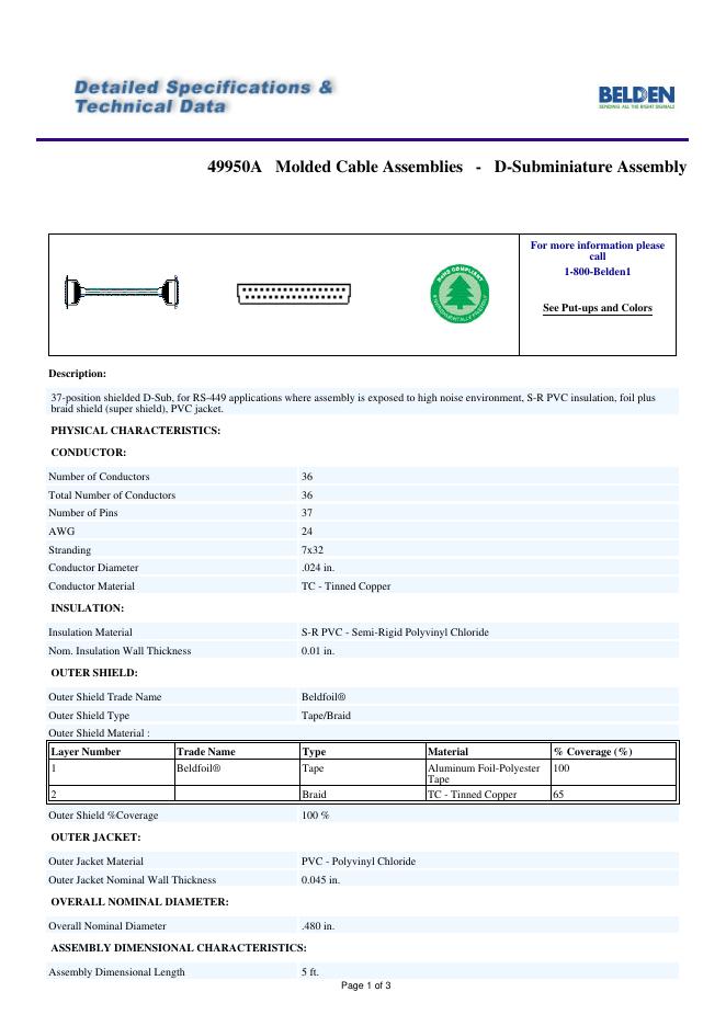 BELDEN 49950A Molded Cable Assemblies - D-Subminiature Assembly 数据手册.pdf