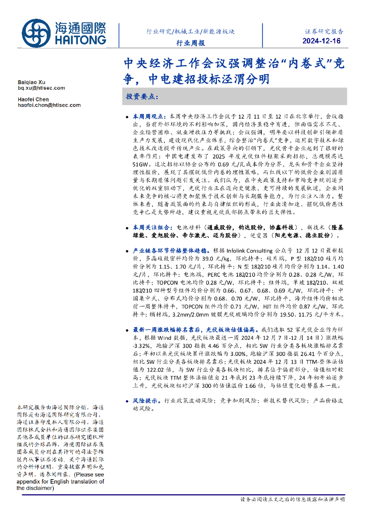 海通国际:新能源板块行业周报:中央经济工作会议强调整治“内卷式”竞争,中电建招投标泾渭分明.pdf