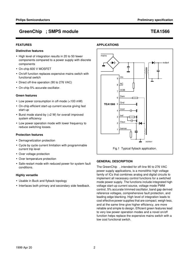 PHILIPS TEA1566 GreenChip SMPS module 数据手册.pdf