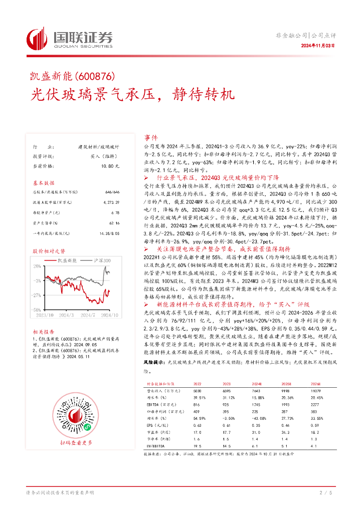 国联证券:凯盛新能(600876)-光伏玻璃景气承压,静待转机.pdf