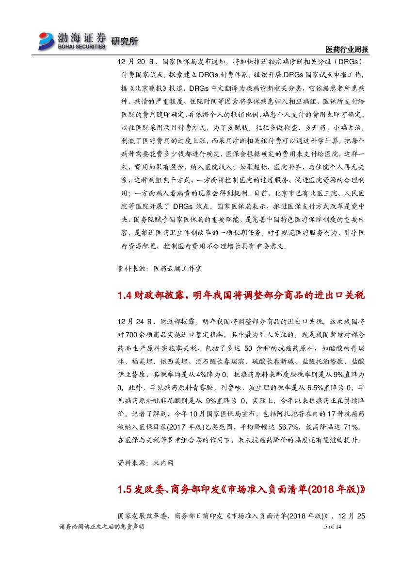渤海证券:医药行业周报:DRGs付费试点推行,辅助用药将进一步边缘化.pdf