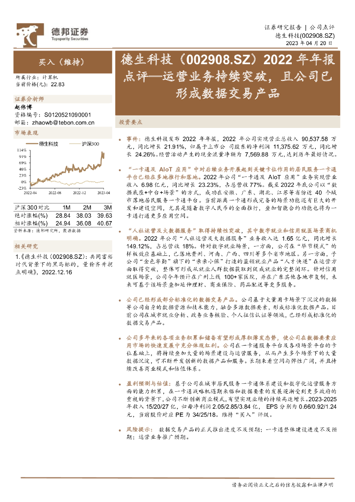 德邦证券:德生科技(002908)-2022年年报点评:运营业务持续突破,且公司已形成数据交易产品.pdf