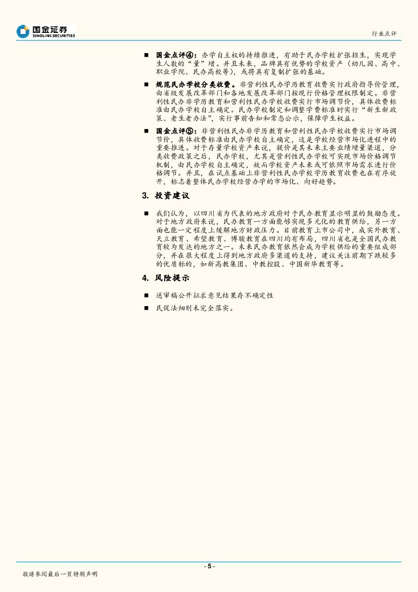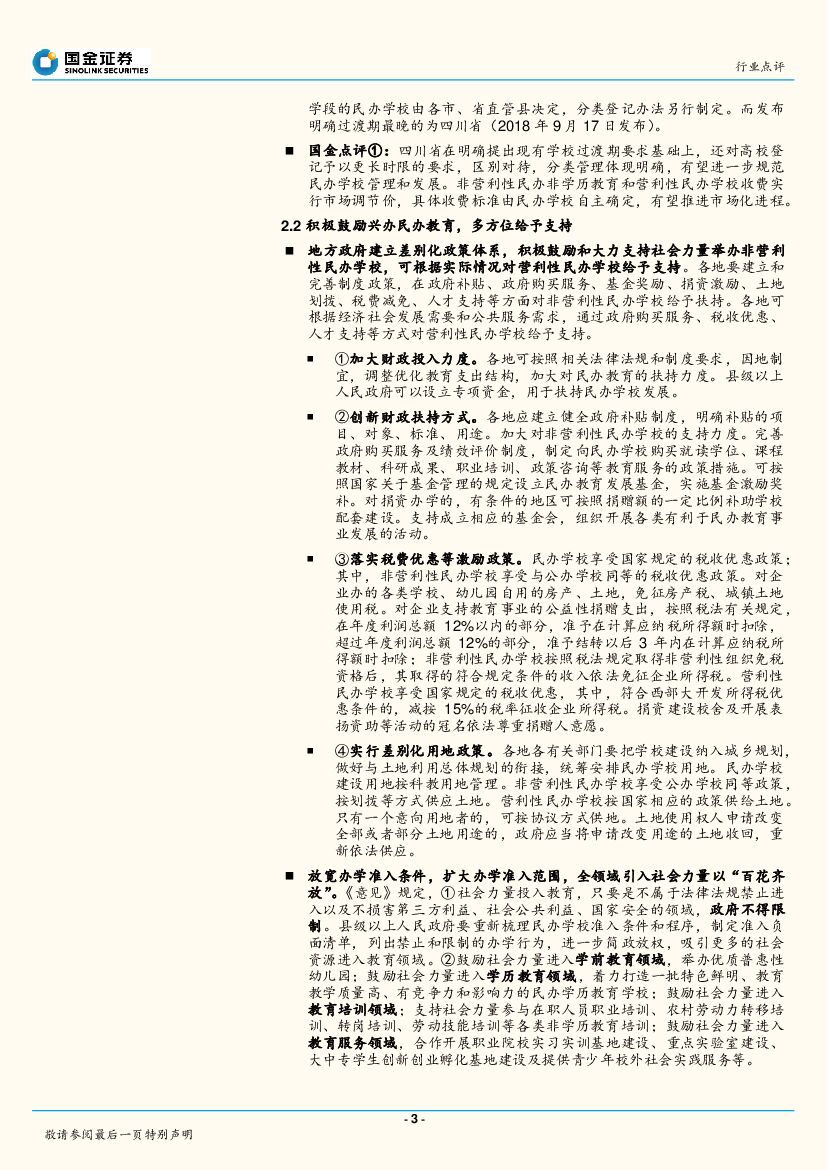 国金证券:教育行业研究:四川发布《实施意见》,持续体现地方政府对于民办教育支持态度.pdf